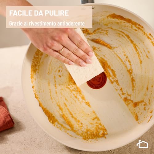 La pulizia, come accennato, è un vero gioco da ragazzi. Il rivestimento Mineralia fa sì che i residui di cibo scivolino via facilmente, e anche se sono lavabili in lavastoviglie, un lavaggio a mano è spesso più che sufficiente. Un piccolo accorgimento per preservare al meglio l'antiaderenza nel tempo è quello di evitare shock termici e l'uso di utensili metallici appuntiti.