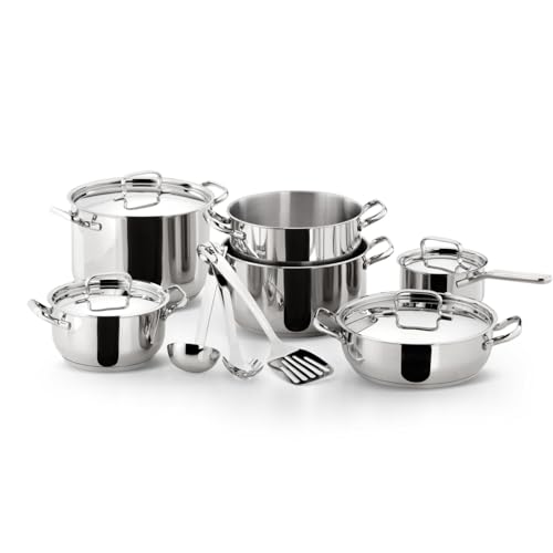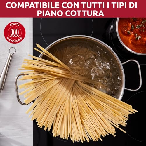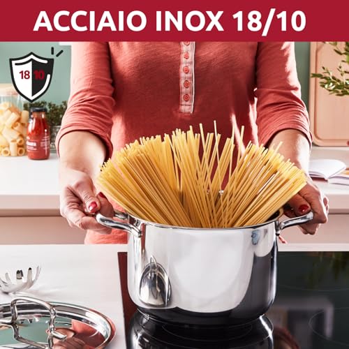 Il set è molto ricco e pensato per coprire praticamente ogni esigenza in cucina. All'interno troviamo: due pentole (diametro 18 e 22 cm), due casseruole fonde a due maniglie (diametro 18 e 22 cm), una casseruola bassa a due maniglie (diametro 24 cm), una casseruola fonda con manico lungo (diametro 14 cm), quattro coperchi abbinati (14, 18, 22 e 24 cm) e un set di tre utensili da cucina essenziali: mestolo, paletta e servispaghetti. Questa completezza lo rende ideale sia per chi sta allestendo la sua prima cucina, sia per chi desidera rinnovare il proprio parco pentole con un prodotto di qualità superiore.