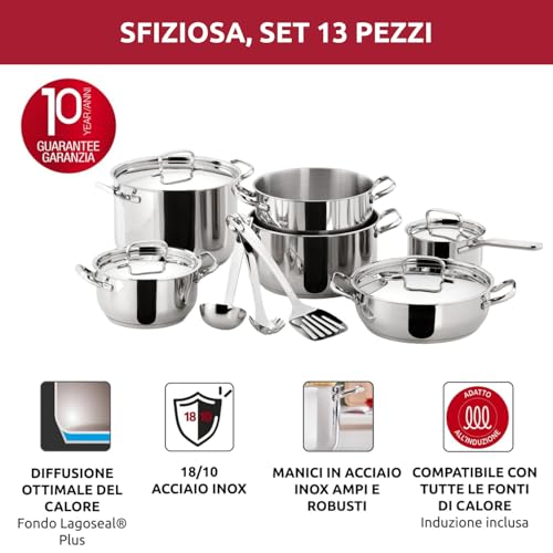 Il set di pentole Lagostina da 13 pezzi è un prodotto di altissima qualità, pensato per durare nel tempo e per offrire prestazioni di cottura eccellenti. La combinazione tra l'acciaio inox 18/10 e il fondo tecnologico Lagoseal Plus lo rende versatile, efficiente e adatto a ogni tipo di preparazione e piano cottura. La completezza della dotazione e la facilità di manutenzione ne fanno un investimento intelligente per chiunque ami cucinare e desideri strumenti affidabili e performanti. Nonostante qualche piccola pecca, come il peso non indifferente di alcuni pezzi e la potenziale formazione di macchie se non asciugate a dovere, i vantaggi superano di gran lunga gli svantaggi. È una batteria che, con la giusta cura, può accompagnarvi in cucina per moltissimi anni, garantendo sempre risultati da chef.