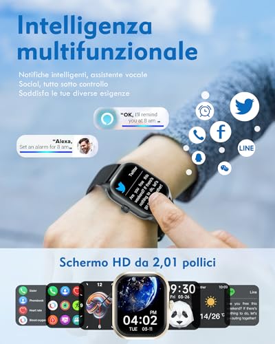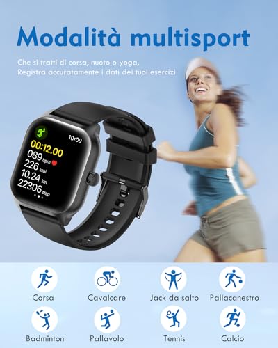 Il punto di forza di questo smartwatch è senza dubbio l'ampio display da 2.01 pollici. La risoluzione di 240x296 pixel, pur non essendo al livello dei top di gamma, garantisce una buona definizione e colori vivaci. La luminosità è regolabile e si dimostra sufficiente per una chiara visualizzazione dei contenuti anche sotto la luce diretta del sole, un aspetto non scontato per i dispositivi di questa categoria. Il touch screen è reattivo e preciso, rendendo piacevole l'interazione con le varie funzioni e notifiche.