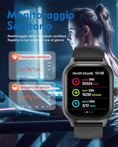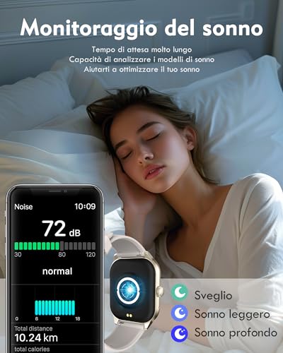 Il LAOYABB Smartwatch si propone come un vero e proprio fitness tracker. Offre un monitoraggio continuo della frequenza cardiaca 24 ore su 24, oltre alla misurazione della pressione sanguigna e della saturazione di ossigeno nel sangue (SpO2). È importante sottolineare che questi dati devono essere considerati come una stima e non possono sostituire una misurazione effettuata con strumenti medicali professionali.