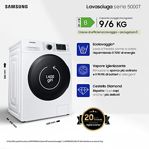 Questa lavasciuga Samsung è un elettrodomestico completo, intelligente e performante. La qualità del lavaggio, grazie a tecnologie collaudate come Ecolavaggio® e all'efficacia dell'AI Wash, è di altissimo livello. La funzione di asciugatura, sebbene richieda cicli lunghi e attenzione a non sovraccaricare il cestello, porta a termine il suo lavoro in modo più che soddisfacente. Le funzionalità smart, l'Ecodosatore e l'interfaccia utente intuitiva rappresentano un vero valore aggiunto, semplificando notevolmente la gestione del bucato quotidiano. Non è un prodotto perfetto – i tempi di asciugatura sono il compromesso da accettare – ma rappresenta una delle migliori soluzioni "tutto in uno" attualmente sul mercato, ideale per chi cerca praticità, tecnologia e ottimi risultati senza avere lo spazio per due elettrodomestici separati.