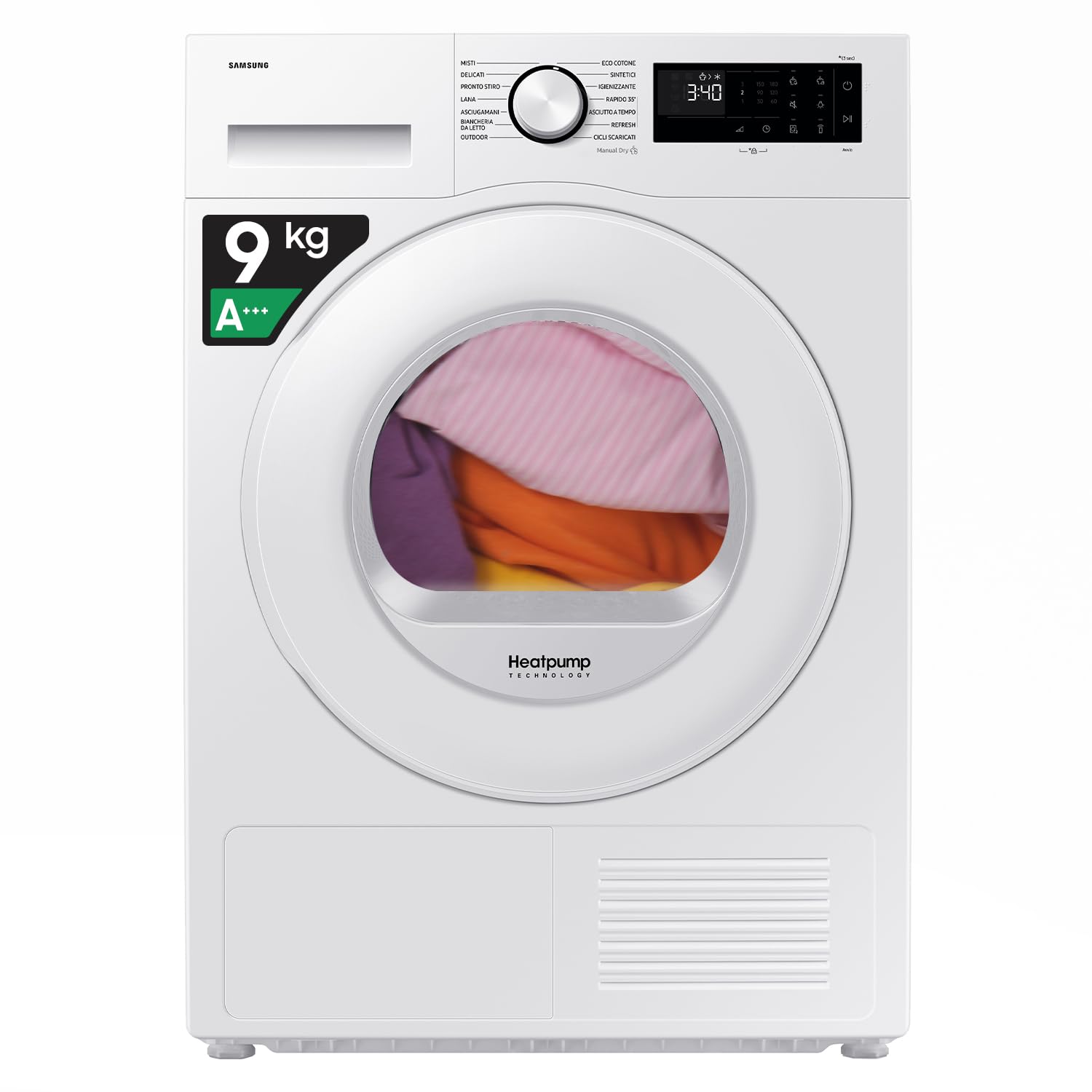 - Asciugatura a Pompa di Calore efficiente e delicata sui capi.
