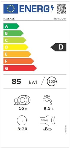 La Hisense HV642D65 è pensata per le famiglie di medie dimensioni, con una capacità di 14 coperti. Offre 6 programmi di lavaggio e ha una rumorosità di 47 dB, un valore buono che la rende discreta durante il funzionamento. Il consumo d'acqua si attesta sui 9,7 litri per ciclo, un dato interessante per chi è attento ai consumi.