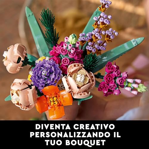 Una volta completato, il LEGO Bouquet di Fiori è semplicemente sbalorditivo. L'impatto visivo è notevole: un'esplosione di colori e forme interessanti che cattura lo sguardo e suscita curiosità. Da una certa distanza, è facile scambiarlo per un bouquet di fiori veri, e solo avvicinandosi si scopre la sua vera natura "a mattoncini". È un pezzo da esposizione elegante e originale, capace di aggiungere un tocco di colore e creatività a qualsiasi ambiente, dalla sala da pranzo all'ufficio.
