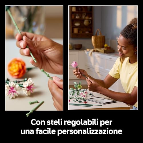 Uno dei maggiori punti di forza di questo set è la possibilità di personalizzazione. Gli steli dei fiori sono regolabili in lunghezza, permettendo di creare composizioni sempre diverse e di adattare il bouquet a qualsiasi tipo di vaso. Questa caratteristica incoraggia la creatività e rende il set un oggetto decorativo dinamico e personale. Inoltre, è possibile combinare i fiori di questo set con quelli di altri bouquet della collezione LEGO Botanicals per creare composizioni ancora più grandi e uniche.