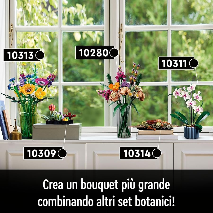 Un aspetto interessante è che molti elementi del set sono realizzati con una plastica di origine vegetale, prodotta utilizzando canna da zucchero sostenibile, a testimonianza dell'impegno di LEGO verso la sostenibilità. Inoltre, questo bouquet può essere combinato con il precedente LEGO Bouquet di Fiori (10280) per creare una composizione ancora più grande e spettacolare.