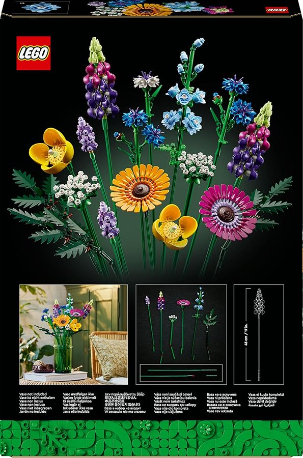 In definitiva, il LEGO Botanicals Bouquet Fiori Selvatici (10313) è un set eccezionale che riesce a coniugare il divertimento della costruzione con un risultato finale di grande impatto estetico. È un'esperienza rilassante e gratificante, adatta sia ai neofiti che ai costruttori più esperti. La qualità dei materiali, l'ingegnosità del design e la bellezza del prodotto finito lo rendono un acquisto assolutamente consigliato. Un pezzo da esposizione che non mancherà di stupire chiunque lo veda, portando un pezzo di natura "eterna" tra le mura di casa.