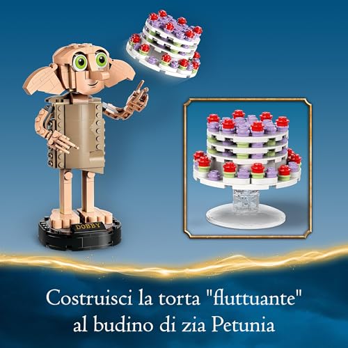 Il set non sarebbe completo senza alcuni degli oggetti più simbolici legati alla storia di Dobby. Troviamo infatti il diario di Tom Riddle con al suo interno il calzino di Harry Potter, l'oggetto che sancisce la sua libertà. È incluso anche un modello della torta "fluttuante" di zia Petunia, protagonista di una delle scene più memorabili del secondo film. Questi accessori arricchiscono notevolmente il valore narrativo del set, permettendo di ricreare momenti chiave della saga.
