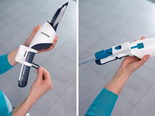 La manutenzione è estremamente semplice. Lo svuotamento del serbatoio, integrato nel manico, avviene tramite un comodo tappo che permette di eliminare l'acqua sporca in modo rapido e igienico. Anche la lamina in gomma della bocchetta è intercambiabile, garantendo così prestazioni di pulizia sempre ottimali nel tempo. Leifheit offre un ecosistema di accessori, tra cui il già citato ugello per il bagno, un supporto a parete per riporre comodamente il dispositivo e un adattatore per manici "Click System", utile per raggiungere le finestre più alte senza dover usare una scala.