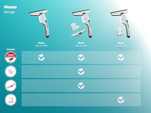 - Set con Adattatore Click System: Pensato per chi ha finestre alte o verande, include l'adattatore per agganciare il Nemo ai manici telescopici Leifheit.