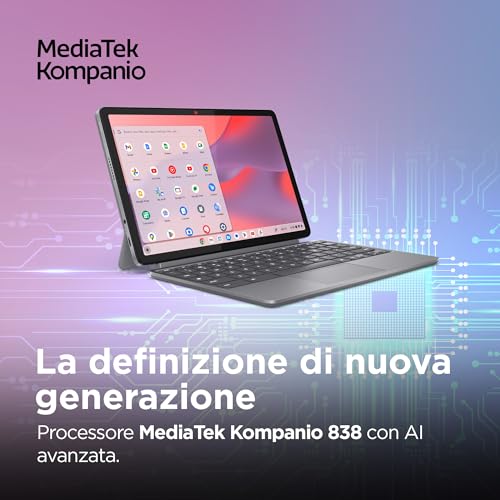 Sotto la scocca troviamo il processore MediaTek Kompanio 520, un chip a otto core progettato specificamente per i Chromebook. A supporto del processore troviamo configurazioni con 4GB o 8GB di RAM LPDDR4X e uno storage eMMC da 64GB o 128GB. Grazie alla leggerezza e all'efficienza di ChromeOS, il sistema operativo di Google, l'esperienza d'uso quotidiana è sorprendentemente fluida.