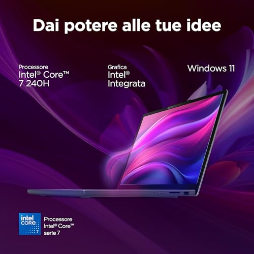 Sotto la scocca, il protagonista è il processore Intel Core 7 150U (in altre varianti si possono trovare anche Core 3 e Core 5), affiancato da 16GB di RAM DDR5 e un SSD da 512GB. Questa configurazione assicura una reattività eccellente per le attività di tutti i giorni: navigazione web con molte schede aperte, gestione di documenti complessi, videochiamate e multitasking spinto non rappresentano un problema. L'avvio del sistema e delle applicazioni è quasi istantaneo grazie al veloce disco a stato solido.