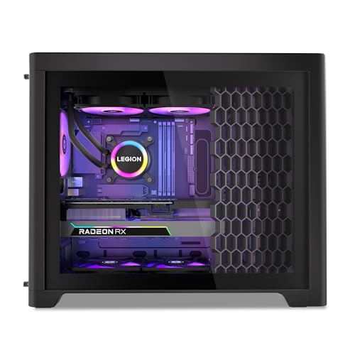 Il design frontale è stato rivisto rispetto alle generazioni precedenti, abbandonando la griglia a nido d'ape per una superficie più piatta e minimalista, dominata dal logo Legion illuminato. Una scelta che potrebbe dividere gli appassionati, ma che conferisce al desktop un look più pulito e meno aggressivo, adatto anche a contesti non esclusivamente ludici.