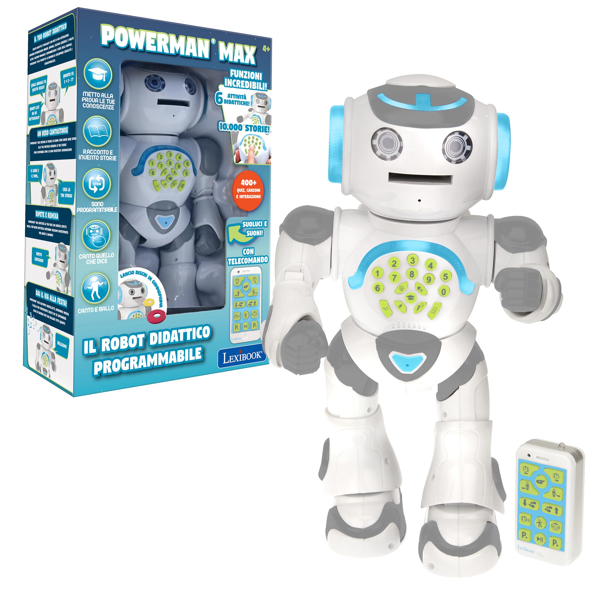 Il vero punto di forza del Lexibook Powerman, però, non è tanto il movimento, quanto la straordinaria quantità di funzioni integrate. Questo robot è una vera e propria piattaforma di edutainment. Tra le sue capacità principali troviamo: