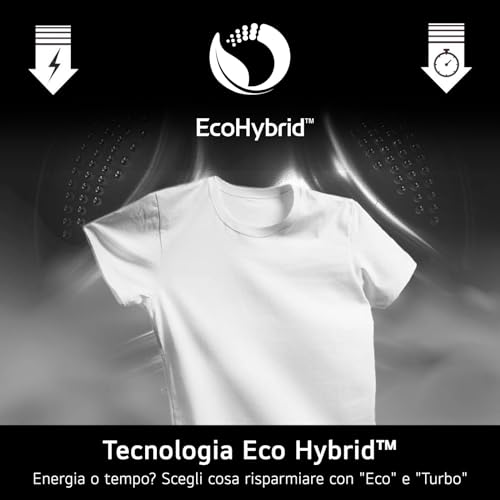 Per quanto riguarda l'asciugatura, la capacità si riduce a 6 kg, un dato standard per le lavasciuga. Qui entra in gioco la tecnologia Eco Hybrid, che offre una doppia opzione: si può scegliere di asciugare in modo più rapido per risparmiare tempo, oppure utilizzare una modalità a basso consumo energetico per risparmiare sulla bolletta. Questa flessibilità è molto utile per adattarsi alle diverse esigenze quotidiane.