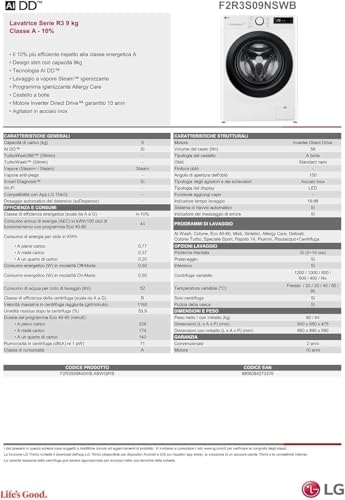 La lavatrice slim LG AI DD F2R3S09NSWB è un elettrodomestico che convince sotto quasi tutti i punti di vista. Unisce una grande capacità di carico in dimensioni compatte, una silenziosità invidiabile e un'efficienza energetica al top della categoria. La vera marcia in più è data dalla tecnologia AI DD e dal lavaggio a vapore, che garantiscono un trattamento dei capi intelligente, personalizzato e igienizzante. È la scelta ideale per famiglie che cercano una lavatrice performante, duratura e attenta ai consumi, ma che non dispongono di molto spazio. Un prodotto completo e affidabile che semplifica la vita quotidiana.