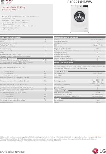 La lavatrice LG AI DD F4R3010NSWB si è dimostrata un elettrodomestico solido, performante e decisamente intelligente. La tecnologia AI DD non è un semplice slogan di marketing, ma una funzione concreta che semplifica la vita e si prende cura del bucato in modo personalizzato. L'ampia capacità di carico, l'eccellente efficienza energetica, la silenziosità del motore Direct Drive e le utili funzioni a vapore la rendono un prodotto completo e versatile. Sebbene manchi una funzione di autodosaggio del detersivo, presente su altri modelli, la qualità costruttiva e l'innovazione tecnologica giustificano pienamente la scelta. È la lavatrice ideale per chi cerca un prodotto affidabile, efficiente e capace di garantire risultati di lavaggio superiori con il minimo sforzo.