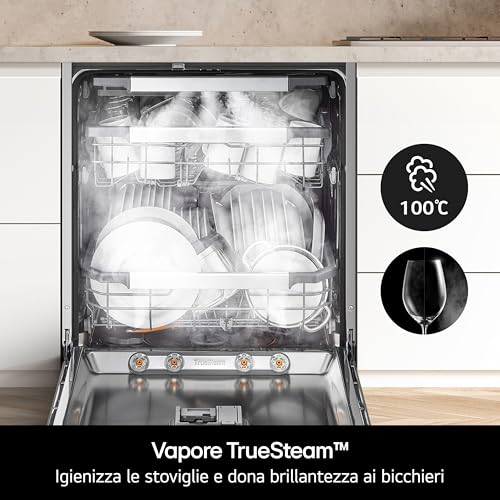 La prima cosa che salta all'occhio analizzando la LG DF375HWS è senza dubbio la tecnologia TrueSteam. Non si tratta del solito "programma vapore" che trovi su altri modelli. Qui parliamo di un getto di vapore vero e proprio, generato ad alta temperatura, che agisce sulle stoviglie prima del lavaggio principale. Il risultato? Lo sporco più ostinato, come formaggio fuso o sugo secco, viene ammorbidito e diventa molto più facile da rimuovere. Questo non solo garantisce una pulizia profonda, ma ha anche un effetto igienizzante non da poco.