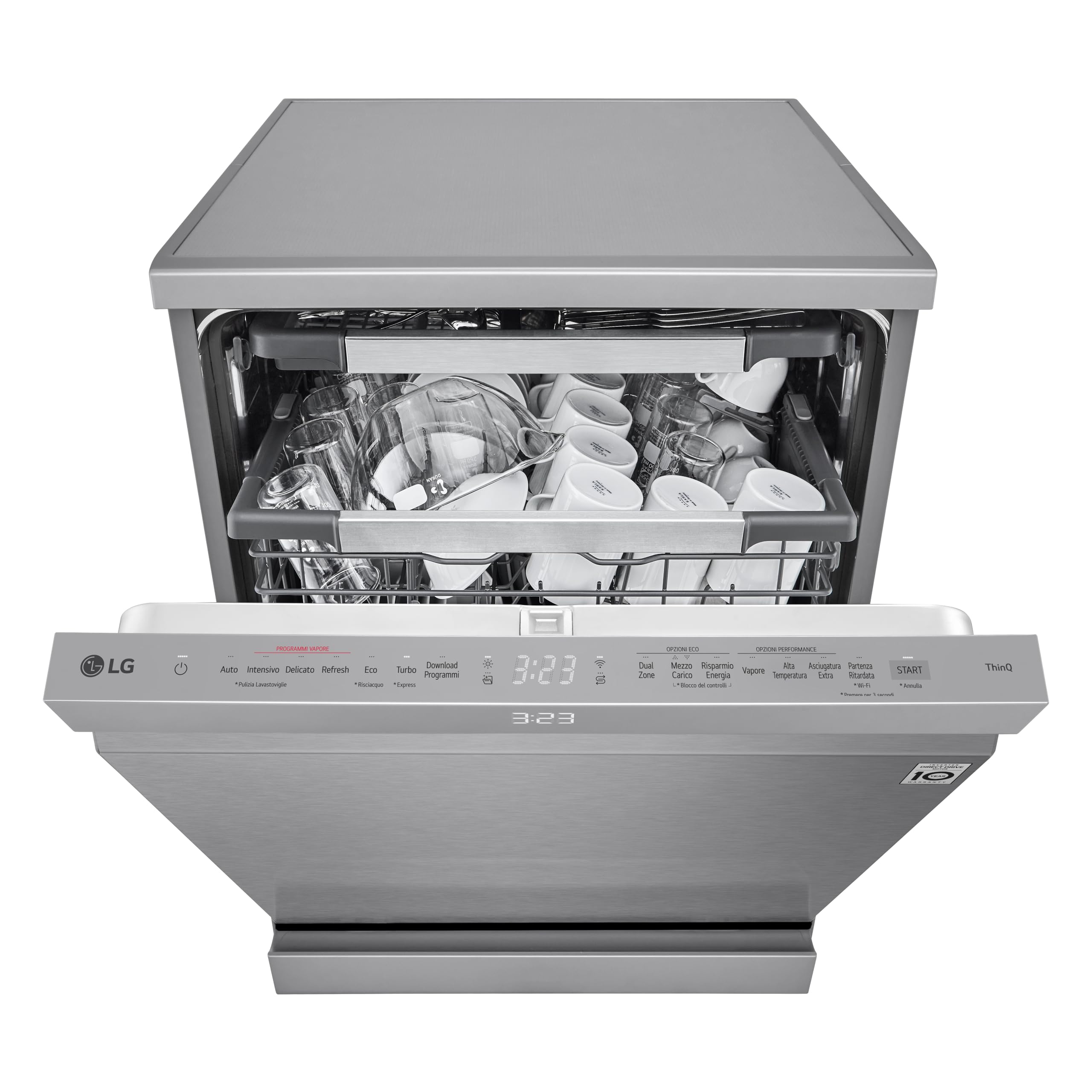 Come ogni elettrodomestico moderno che si rispetti, anche la DF587HVS è dotata di connettività Wi-Fi. Tramite l'app LG ThinQ è possibile gestire la lavastoviglie da remoto: avviare un ciclo, ricevere notifiche sulla fine del lavaggio, scaricare nuovi programmi specifici (ad esempio per pentole o bicchieri) e monitorare i consumi. L'app include anche la funzione Smart Diagnosis, che aiuta a identificare e risolvere piccoli problemi tecnici senza dover necessariamente chiamare l'assistenza.