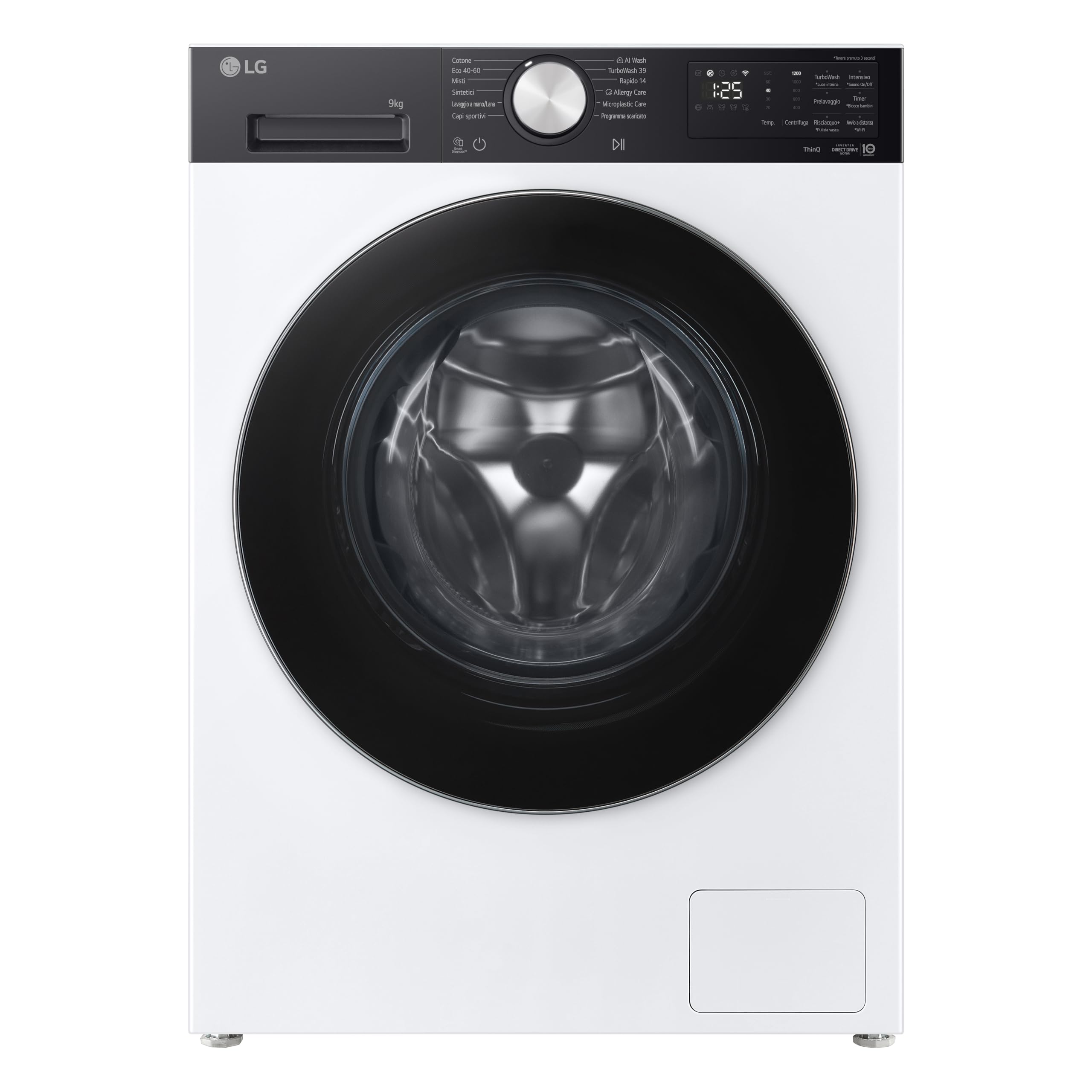 Come ogni elettrodomestico moderno che si rispetti, anche la F2NX50S9TKC è dotata di connettività Wi-Fi. Tramite l'app LG ThinQ™, disponibile per smartphone, è possibile gestire la lavatrice da remoto. Potrai avviare un ciclo di lavaggio mentre sei fuori casa, monitorarne lo stato, ricevere notifiche quando il bucato è pronto e persino scaricare nuovi programmi di lavaggio specifici per ogni esigenza. L'app offre anche una funzione di diagnostica intelligente (Smart Diagnosis) per risolvere piccoli problemi senza dover chiamare un tecnico.