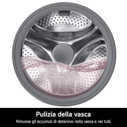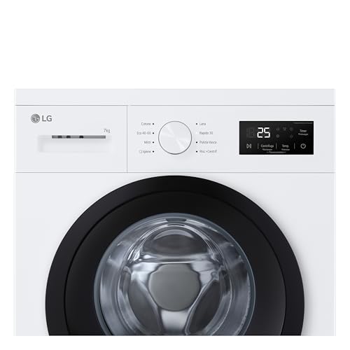 Il design è un altro punto a suo favore. LG ha puntato su linee minimaliste ed essenziali, con un corpo macchina bianco e un oblò nero a contrasto, che le conferiscono un aspetto moderno ed elegante, capace di adattarsi a diversi stili di arredamento. La praticità d'uso è garantita da un pannello di controllo intuitivo, che combina una manopola per la selezione dei programmi principali con comandi touch e un ampio display LED, sempre ben visibile, che mostra il tempo rimanente e le opzioni selezionate.