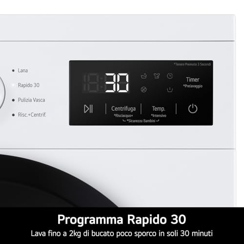 La lavatrice offre un totale di 8 programmi di lavaggio, pensati per coprire le esigenze più comuni. Tra questi troviamo i classici Cotone, Eco 40-60, Misti e Lana. Molto comodo è il programma Rapido 30, ideale per rinfrescare carichi ridotti (sotto i 2 kg) in poco tempo. Tuttavia, una critica mossa da alcuni utenti riguarda la durata degli altri cicli di lavaggio, considerati tendenzialmente lunghi. La mancanza di programmi di durata intermedia (un'ora/un'ora e mezza) potrebbe essere un limite per chi cerca maggiore flessibilità. Completano la dotazione la partenza ritardata, la funzione di pulizia della vasca e l'indicatore del tempo residuo.