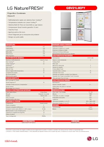 L'LG GBV21L0EPY è un frigorifero combinato estremamente valido, che offre un eccellente equilibrio tra tecnologie innovative per la conservazione, design funzionale e prestazioni affidabili. I suoi punti di forza sono senza dubbio le tecnologie Linear Cooling e Door Cooling+, che garantiscono una freschezza prolungata dei cibi, e il Compressore Smart Inverter, che assicura efficienza e una silenziosità quasi assoluta. Il sistema Total No Frost e l'apertura a filo muro sono ulteriori comodità che migliorano l'esperienza d'uso quotidiana. Sebbene lo spazio nel freezer possa risultare giusto per alcuni e la classe energetica non sia la top di gamma, rappresenta una scelta solida e consigliata per chi cerca un elettrodomestico affidabile, silenzioso e tecnologicamente avanzato, senza fronzoli smart non essenziali.