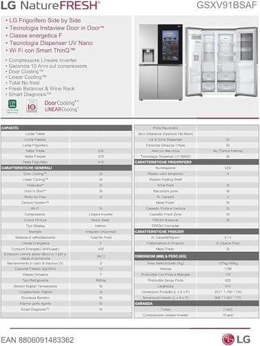 L'LG GSXV80PZLE è molto più di un semplice frigorifero. È un concentrato di tecnologia, design e praticità che punta a semplificare la vita in cucina. La capienza è enorme, la gestione degli spazi interni è eccellente e le tecnologie come InstaView™, Door Cooling™ e il Compressore Lineare Inverter fanno davvero la differenza nell'uso quotidiano, sia in termini di freschezza degli alimenti che di comfort acustico. Certo, la classe energetica E potrebbe far storcere il naso a chi cerca il massimo del risparmio, ma è un compromesso accettabile vista la mole e le funzionalità offerte. Un prodotto consigliato a chi cerca un frigorifero americano top di gamma, spazioso, silenzioso e tecnologicamente avanzato, capace di diventare il vero protagonista della cucina.
