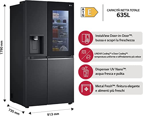 Il primo impatto con l'LG GSXV91MCAE è senza dubbio notevole. Parliamo di un frigorifero Side by Side imponente, con le sue dimensioni generose (91,3 cm di larghezza per 179 cm di altezza) e una finitura elegante in Matte Black che lo rende un vero e proprio pezzo d'arredamento. Non è un elettrodomestico da nascondere, ma da esibire. La sua presenza in cucina è destinata a non passare inosservata, trasformando l'ambiente con un tocco di modernità e raffinatezza.