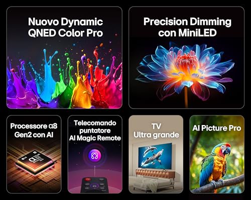 La riproduzione dei colori è un altro punto di forza. La tecnologia Dynamic QNED Color assicura una gamma cromatica ampia e realistica, con colori vivaci e immagini che sembrano quasi uscire dallo schermo. L'unione di Quantum Dot e NanoCell fa un ottimo lavoro nel restituire colori saturi e brillanti, con una copertura dello spazio colore DCI-P3 che in alcuni modelli supera il 90%.