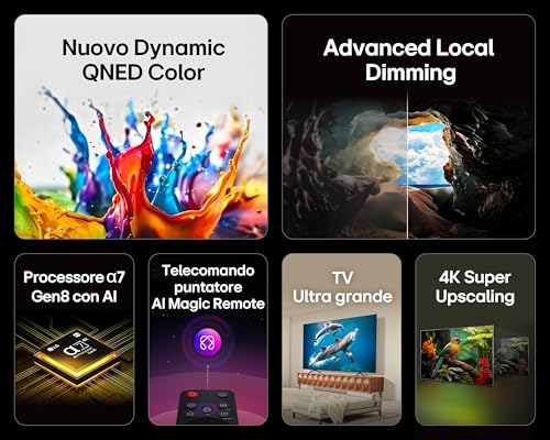 - Colori brillanti e vivaci grazie alla tecnologia QNED