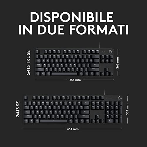 La G413 SE è disponibile in due varianti principali: il modello Full Size, con tastierino numerico, e la versione TKL (Tenkeyless), più compatta e priva del tastierino. La TKL è ideale per chi ha poco spazio sulla scrivania o preferisce tenere il mouse più vicino alla tastiera per una postura più ergonomica durante le sessioni di gioco. Il peso si attesta sui 780 grammi per la versione standard e 650 grammi per quella TKL, un buon equilibrio tra portabilità e stabilità.