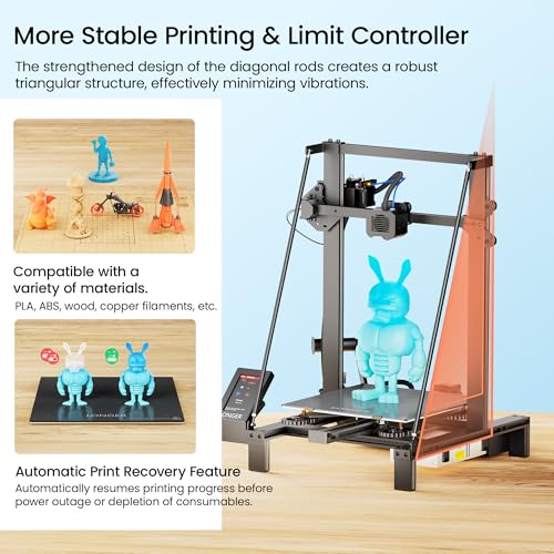 - Funzionalità Aggiuntive: Non mancano due funzioni ormai quasi standard ma sempre apprezzate: il sensore di fine filamento, che mette in pausa la stampa se il materiale si esaurisce, e la funzione di ripresa della stampa, che permette di ricominciare dal punto in cui si era interrotta in caso di blackout.