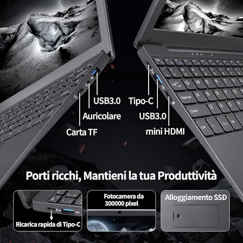 Sul fronte della connettività, il LONGEVINCE Piccolo mini laptop offre un set di porte piuttosto completo per un dispositivo di questa taglia. Troviamo infatti: