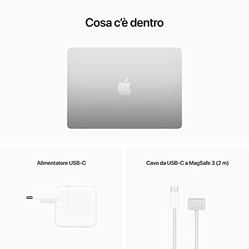La prima cosa che salta all'occhio del MacBook Air M2 è il suo nuovo design. Apple ha abbandonato la storica forma a cuneo per un profilo piatto e uniforme, molto simile a quello dei fratelli maggiori MacBook Pro. Questa scelta non solo conferisce al portatile un aspetto più moderno e professionale, ma lo rende anche incredibilmente sottile (appena 1,13 cm) e leggero, con un peso di circa 1,24 kg. La costruzione è, come sempre per Apple, impeccabile, con un guscio unibody in alluminio che trasmette una sensazione di solidità e pregio. Una novità molto gradita è il ritorno del connettore di ricarica MagSafe, che libera una delle due porte Thunderbolt / USB 4, un grande vantaggio rispetto al modello M1.