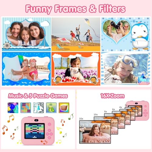 Questa fotocamera non si limita a scattare e stampare. È un piccolo centro di intrattenimento portatile. Il display è un ampio schermo da 2,4 pollici, abbastanza grande e luminoso per permettere ai bambini di inquadrare facilmente e navigare tra le varie opzioni. La risoluzione video arriva a 1080P, un dettaglio non da poco per un prodotto di questa fascia, che permette di registrare piccoli filmati dei momenti più divertenti.