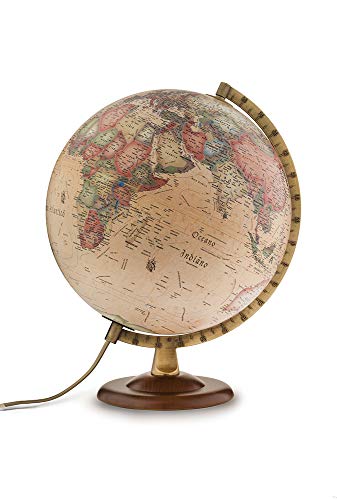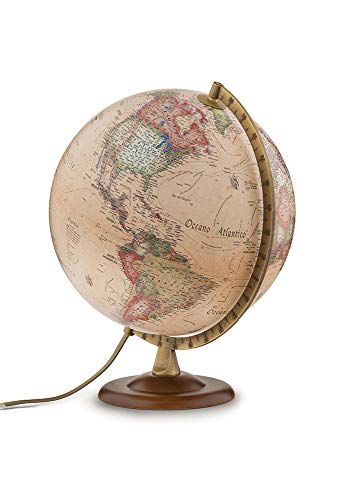 - Stile Antico: Per chi ama un'estetica più vintage e calda, questa versione è perfetta. La cartografia richiama le mappe di un tempo, con colori seppiati e un design classico, pur mantenendo informazioni geografiche aggiornate. Anche in questo caso, la luce interna crea un'atmosfera suggestiva, rendendolo un perfetto punto luce per uno studio o un salotto.
