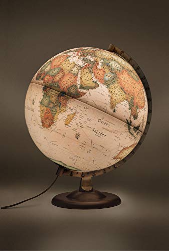- Stile Fisico/Politico: Questa è forse la versione più versatile e interessante dal punto di vista didattico. A luce spenta, il globo mostra una dettagliata cartografia fisica, con colori tenui che evidenziano catene montuose, deserti e oceani. Una volta accesa la luce LED interna, la magia si compie: i confini degli stati si illuminano con colori diversi, trasformando la mappa in una cartografia politica. Questa doppia funzione lo rende uno strumento di apprendimento dinamico e affascinante.
