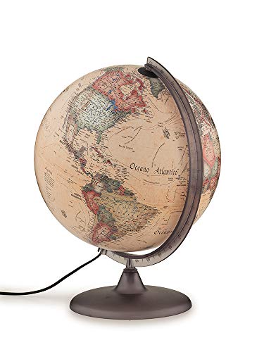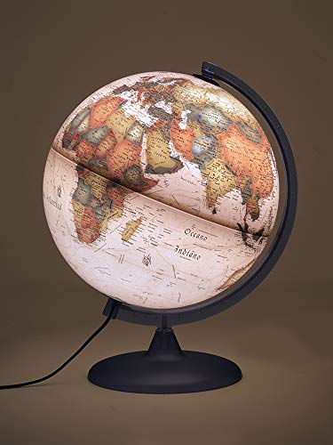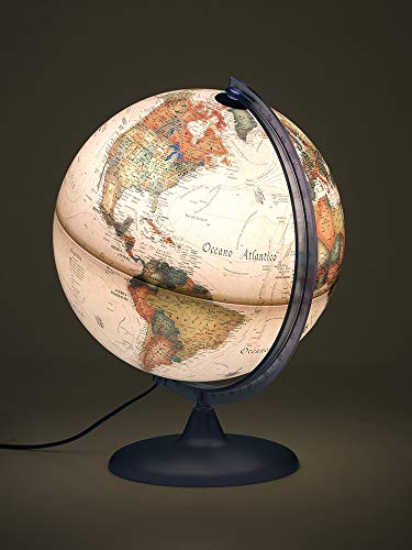 La versione Atmosphere A2, invece, punta tutto sul fascino retrò. La sua cartografia in stile antico, con i suoi colori caldi e i disegni che richiamano le antiche mappe nautiche, è già di per sé splendida a luce spenta. Quando si illumina, l'effetto è ancora più suggestivo, trasformando il mappamondo in una lampada d'atmosfera elegante e ricca di fascino, perfetta per uno studio o un salotto dal gusto classico.