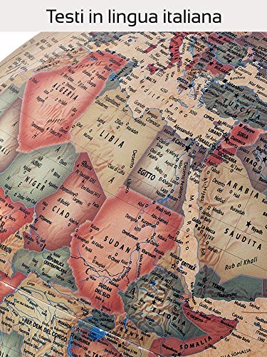 La sfera, con un diametro standard di 30 cm, ha una dimensione ideale: abbastanza grande da permettere una lettura chiara dei toponimi e dei dettagli geografici, ma non così ingombrante da non trovare posto su una scrivania, una libreria o un mobile in soggiorno. La struttura è realizzata in plastica ad alta resistenza, un dettaglio che potrebbe far storcere il naso agli amanti dei materiali "nobili" come il legno, ma che nell'uso quotidiano si rivela una scelta saggia, garantendo leggerezza e durabilità.