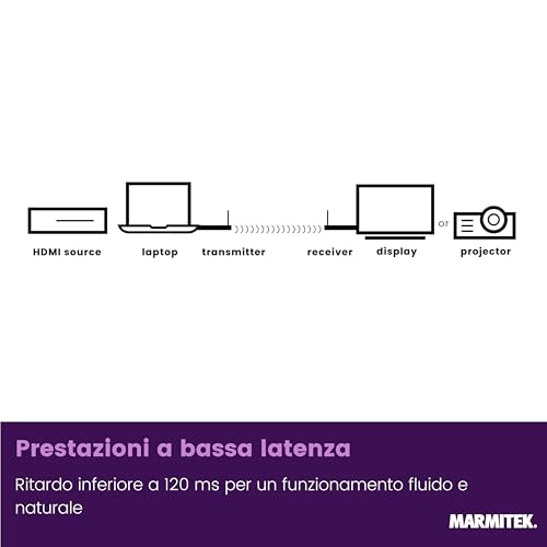 Una delle caratteristiche più apprezzate è che non richiede software, app o una connessione Wi-Fi esistente per funzionare. Il sistema crea una sua rete diretta a 5 GHz, garantendo una connessione stabile fino a una distanza di circa 20 metri in campo aperto. Supporta una risoluzione massima di Full HD 1080p a 60Hz, più che sufficiente per slide, documenti e video aziendali. La latenza dichiarata è inferiore a 120 ms, un valore che lo rende reattivo per le presentazioni, anche se non ideale per il gaming competitivo.