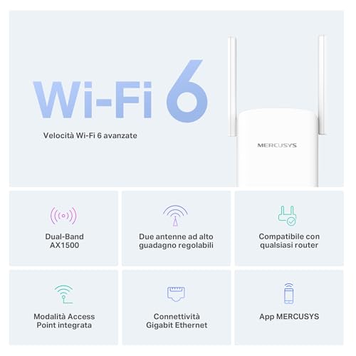 Il Mercusys AX1500 Wi-Fi 6 Range Extender, noto principalmente con la sigla ME60X, si presenta sul mercato con una promessa tanto semplice quanto ambiziosa: eliminare le "zone morte" del Wi-Fi in casa o in ufficio in modo economico ed efficiente. In un'epoca in cui streaming 4K, gaming online e videochiamate sono all'ordine del giorno, avere una connessione stabile in ogni angolo è diventato fondamentale. Questo piccolo dispositivo sfrutta la tecnologia Wi-Fi 6 (802.11ax) per offrire velocità superiori, maggiore efficienza e una migliore gestione di più dispositivi connessi simultaneamente rispetto alle generazioni precedenti.