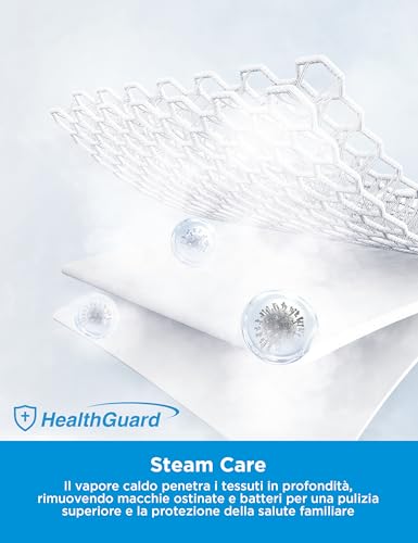 Un'altra funzione di punta è lo Steam Care, ovvero il trattamento a vapore. Il vapore, immesso nel cestello, igienizza i capi in profondità, eliminando fino al 99,9% di batteri e odori. Inoltre, aiuta a distendere le fibre dei tessuti, riducendo le pieghe e facilitando la stiratura. Questa funzione è ideale per chi ha bambini piccoli, soffre di allergie o semplicemente desidera un bucato perfettamente igienizzato.