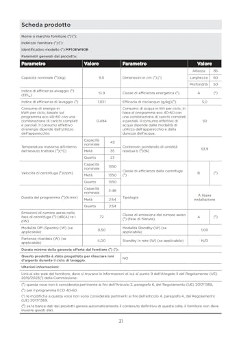 Analizziamo ora le specifiche tecniche che distinguono questi modelli. La prima cosa che salta all'occhio è l'eccellente classe di efficienza energetica. Il modello da 8 kg, MF21EW80B, vanta una classe A-20%, mentre il modello da 9 kg, MF10EW90B, si attesta su una comunque ottima classe A. Questo si traduce in un notevole risparmio sui costi di acqua e luce in bolletta, un fattore da non sottovalutare.