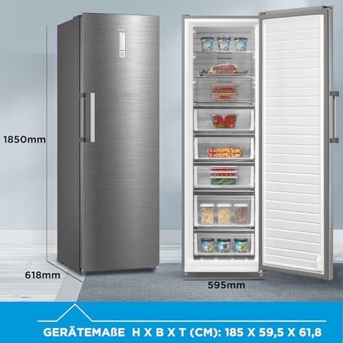 Il Midea MDRU333FZE01 si presenta come un congelatore verticale a libera installazione dalle dimensioni generose, con un'altezza di 172,2 cm e una capacità netta di 238 litri. Questo lo rende ideale per le famiglie numerose o per chi ha l'abitudine di fare grandi scorte di cibo. Ma la sua vera peculiarità, quella che lo distingue nettamente dalla concorrenza, è la sua incredibile versatilità. Grazie alla funzione "Flexible Kühl- und Gefrierfunktion", questo elettrodomestico può trasformarsi da capiente congelatore a frigorifero con un semplice tocco.