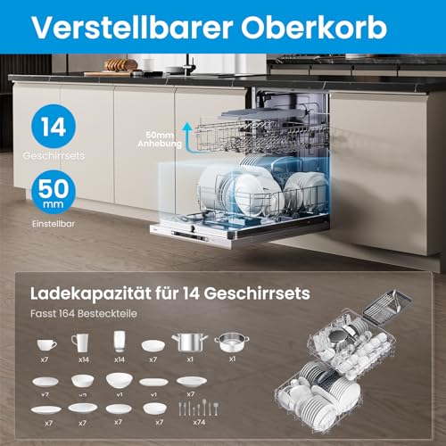 Uno dei primi aspetti che colpiscono della Midea SV 5.14K14C è senza dubbio la sua notevole capienza da 14 coperti. Questo la rende una scelta ideale non solo per le famiglie numerose, ma anche per chi ama organizzare cene con amici e parenti senza doversi preoccupare di lavare montagne di piatti a mano. Le dimensioni standard da 60 cm (A845 x L598 x P600 mm) permettono un'integrazione perfetta nella maggior parte delle cucine componibili. L'interno è progettato per essere estremamente flessibile: il cestello superiore è regolabile in altezza, permettendo di inserire senza problemi anche pentole, padelle e piatti di grandi dimensioni, fino a 30 cm di diametro.