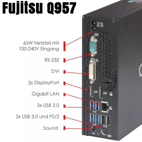 Nonostante le dimensioni compatte, il Fujitsu Esprimo Q957 offre un parco connessioni davvero completo. Sul pannello frontale e posteriore troviamo un'ampia dotazione di porte USB, tra cui diverse USB 3.1 e, soprattutto, una moderna porta USB Type-C, sempre più utile per collegare dispositivi di ultima generazione. Per l'output video, sono presenti due DisplayPort e una DVI, permettendo di collegare facilmente fino a tre monitor contemporaneamente. La connettività di rete è garantita sia da una porta Ethernet Gigabit per la massima stabilità, sia dal modulo WiFi integrato, per una maggiore libertà di posizionamento senza l'ingombro dei cavi.