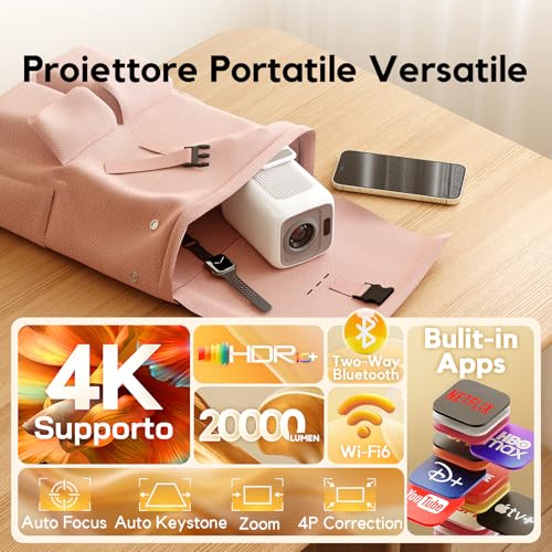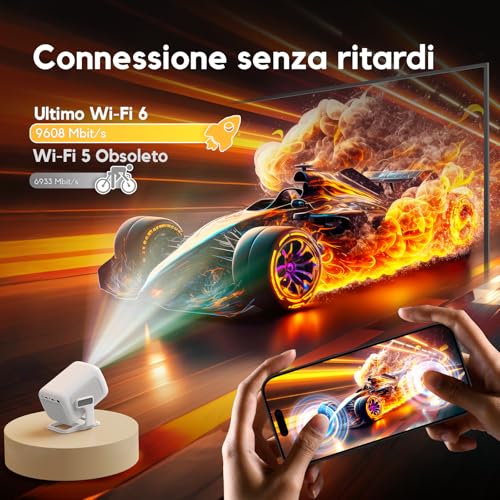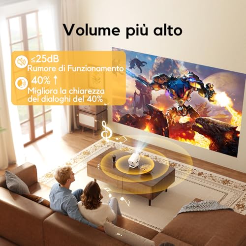 L'altoparlante integrato è, come spesso accade in questi mini proiettori, appena sufficiente. Il volume non è altissimo e la qualità è basilare, con bassi quasi assenti. Per un'esperienza audio coinvolgente, è caldamente consigliato collegare delle casse esterne o una soundbar tramite l'uscita jack da 3.5mm.
