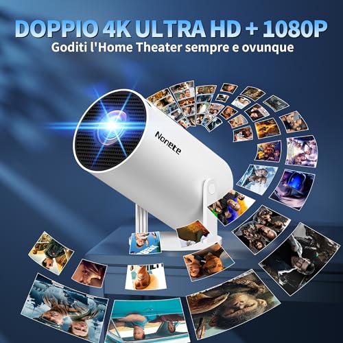 In conclusione, il Mini Proiettore Portatile 1080P 4K WiFi 6 di nonete è un prodotto che riesce a centrare l'obiettivo: offrire un'esperienza di intrattenimento su grande schermo versatile, smart e accessibile. La combinazione di una buona qualità d'immagine Full HD, una connettività di ultima generazione con WiFi 6 e Bluetooth, e soprattutto un sistema Android integrato che lo rende autonomo, ne fanno un dispositivo estremamente interessante. La flessibilità offerta dalla base rotante a 270° e dalla correzione automatica dell'immagine sono ciliegine sulla torta che ne migliorano notevolmente l'usabilità quotidiana. Non è un prodotto esente da difetti, come la rumorosità della ventola e la necessità di un ambiente buio per performare al meglio, ma considerando la sua categoria, i pro superano decisamente i contro. È la scelta ideale per chi cerca un primo proiettore, per chi desidera una soluzione portatile da usare in diverse stanze o all'aperto, e per chiunque voglia godersi film e serie TV su uno schermo gigante senza complicazioni.